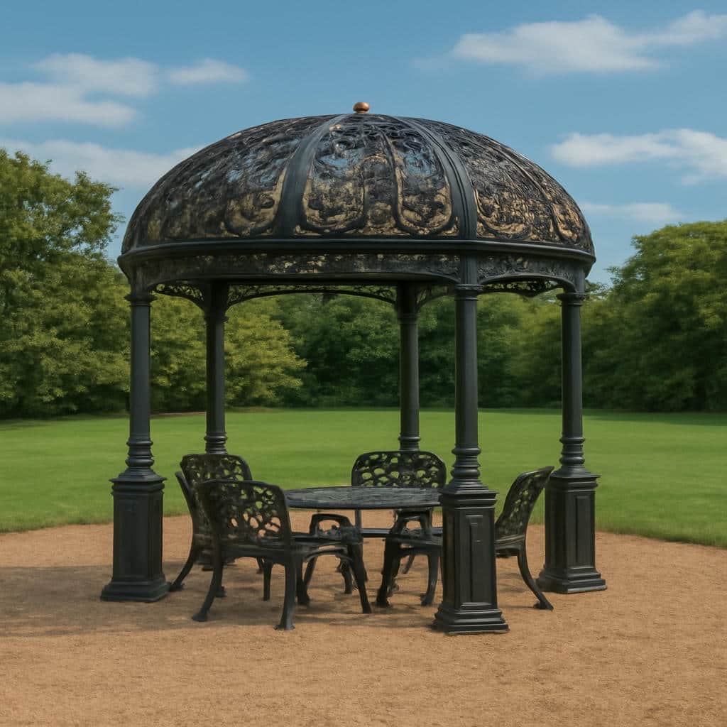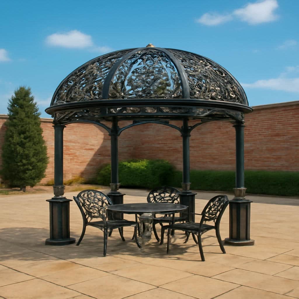 آلاچیق الیزه با وزن بالا و طراحی گنبدی منحصربه فرد, در مقایسه با نمونه های ساده فلزی یا آلومینیومی, کیفیت و ماندگاری بسیار بیشتری دارد. قیمت آن متناسب با دوام, زیبایی و جزئیات کارشده است و هرگز نباید تنها با قیمت های پایین تر مقایسه شود.