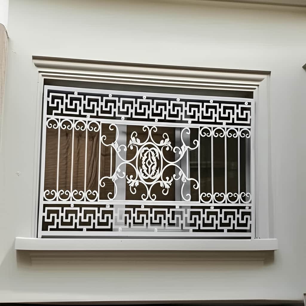 حفاظ پنجره مدل ورساچه, نقطه تلاقی زیبایی شناسی کلاسیک و استحکام صنعتی است؛ محصولی که با الهام از خطوط یونانی و نقوش فرفورژه تزئینی, نمایی بی مانند و اصیل به ساختمان های لوکس می بخشد. این مدل با الگوهای هندسی منظم و ریزه کاری های بیضی و فرفورژه, جلوه ای اشرافی, مدرن و همزمان ریشه دار برای نمای خارجی خانه یا ویلا خلق می کند. فریم مقاوم از پروفیل های آهنی 20×20 یا 30×30 میلی متر, اسکلت محکم را تضمین می کند و جزئیات تزئینی با برش CNC و رنگ الکترواستاتیک کوره ای, ماندگاری بالایی در برابر رطوبت, زنگ زدگی و آفتاب دارند. تنوع رنگ از سفید و طلایی تا قهوه ای سوخته و مشکی یا ترکیب های خاص مانند مشکی-طلایی و سفید-نقره ای, قدرت انتخاب مشتری را چند برابر می کند.