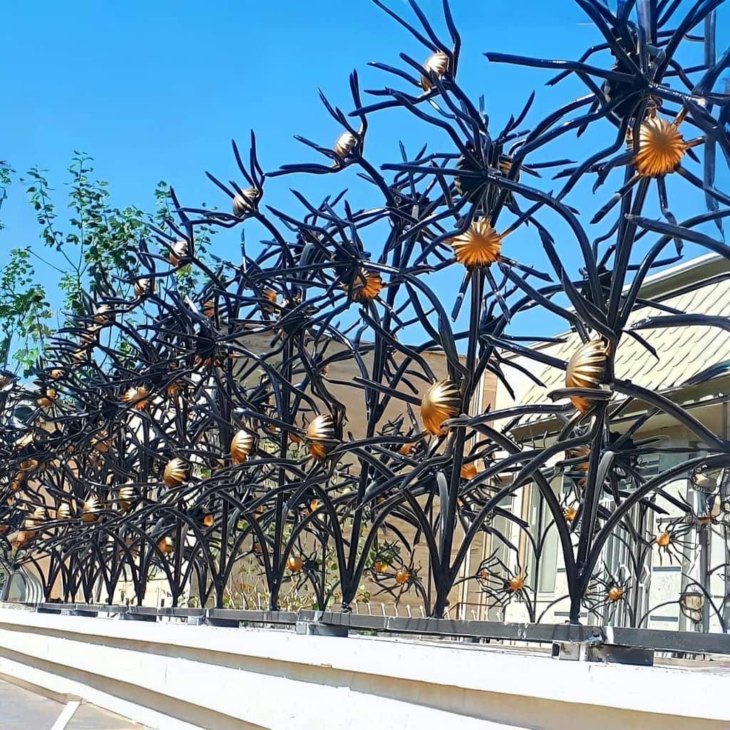 حفاظ گل آفتابگردان, انتخابی ایده آل برای افرادی است که به دنبال ترکیب امنیت و زیبایی منحصر به فرد بر روی دیوارهای ویلایی, ساختمان های کم طبقه و حتی محیط های مسکونی هستند. این مدل از حفاظ دیواری با الهام از گل آفتابگردان, علاوه بر افزایش ایمنی محیط, جلوه ای خاص و هنری به فضای بیرونی ساختمان شما می بخشد. شاخه های اصلی این حفاظ از میلگرد فولادی 12 میلی متری ساخته می شود و گل های تزئینی با میلگرد 8 میلی متری و جوشکاری CO2 حرفه ای به بدنه متصل می گردد تا نهایت استحکام و طول عمر را فراهم کند.