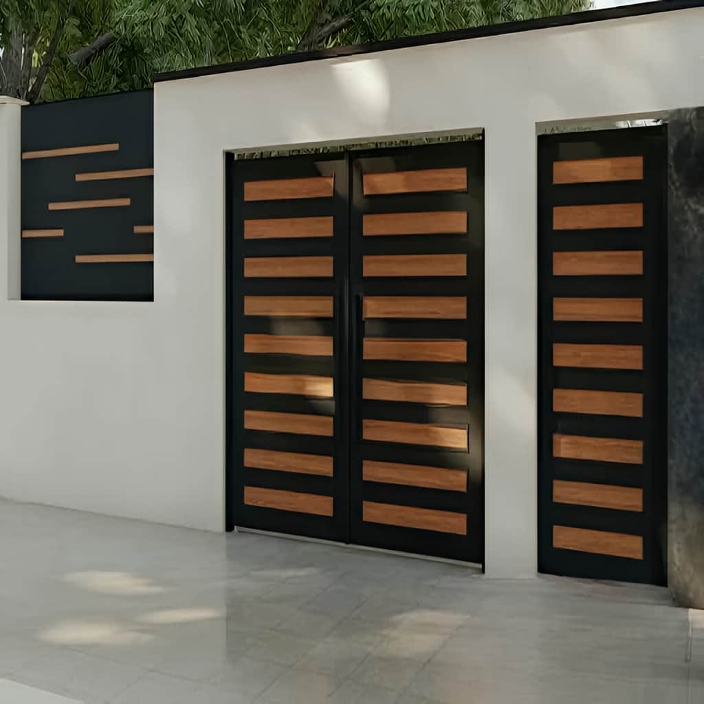 درب حیاط مدرن راسا, ترکیبی بی نظیر از سادگی, استحکام و زیبایی مهندسی شده است که با خطوط منظم و ترکیب فلز و ترمووود, تعریف جدیدی از ورودی های لوکس و مدرن را ارائه می کند. طراحی این مدل, الهام گرفته از سبک های مینیمال اروپایی و نظم معمارانه است تا نمای پروژه های ویلایی, ساختمان های نئوکلاسیک و مجتمع های امروزی را متحول کند. ساختار بدنه از پروفیل آهنی سنگین, ورق کاری CNC دقیق و اتصالات جوش CO₂ است که استحکام و ایمنی بالا را تضمین می نماید. انتخاب رنگ پودری کوره ای الکترواستاتیک باعث مقاومت حداکثری در برابر زنگ زدگی, سایش و اشعه خورشید می شود.