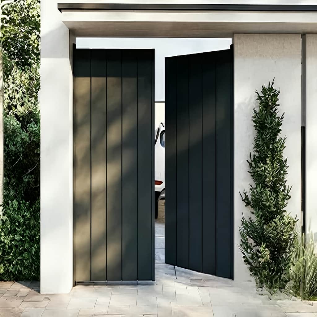 درب مدرن کیت کت عمودی, سمبل ظرافت و امنیت در ورودی ویلا, باغ و ساختمان های مدرن است. این مدل با طراحی الهام گرفته از خطوط عمودی تکرار شونده و فرم مینیمال, جلوه ای متفاوت و خاص به نمای بیرونی هر سازه می بخشد. بدنه تماماً از فولاد صنعتی با ورق برش لیزری ساخته شده که پوششی بدون هرگونه دید به داخل فراهم می کند؛ بنابراین, حریم خصوصی کاملی برای فضای داخلی ایجاد می شود. ابعاد استاندارد درب مدرن کیت کت عمودی در نسخه ماشین رو, عرض 300, 330 یا 350 سانتی متر و ارتفاع 240 سانتی متر است و مدل نفررو تک لنگه با عرض 110 سانتی متر تولید می شود, با این حال, امکان ساخت کاملاً سفارشی بر اساس نیاز پروژه شما فراهم است.