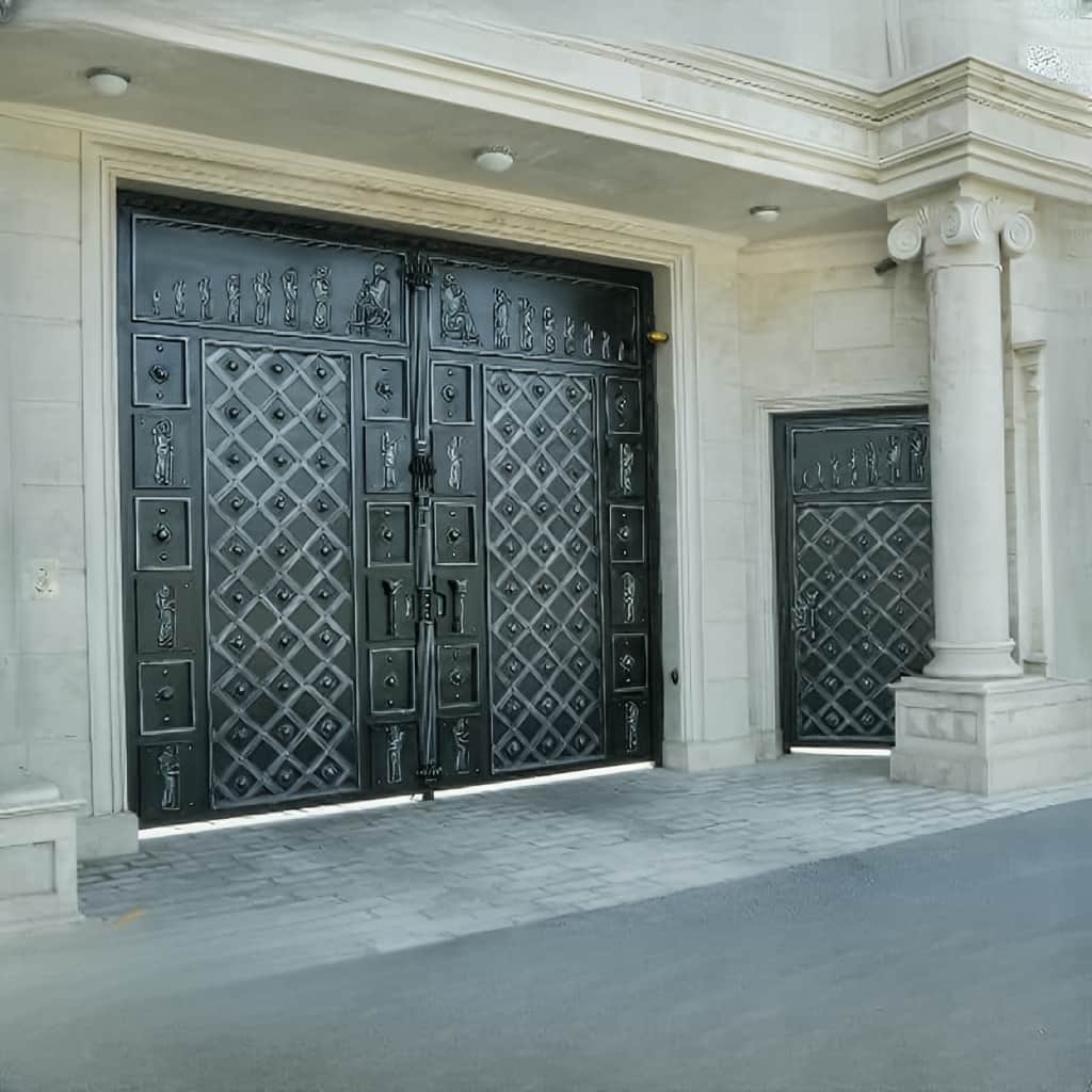 خرید درب مدل هخامنش فرفورژه درب دو لنگه فلزی, الهام گرفته از معماری باستانی ایران, مناسب ساختمان های لوکس